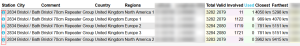 On the 'stations' list page,you will see Bristol 2834 listed 5 times, showing the '